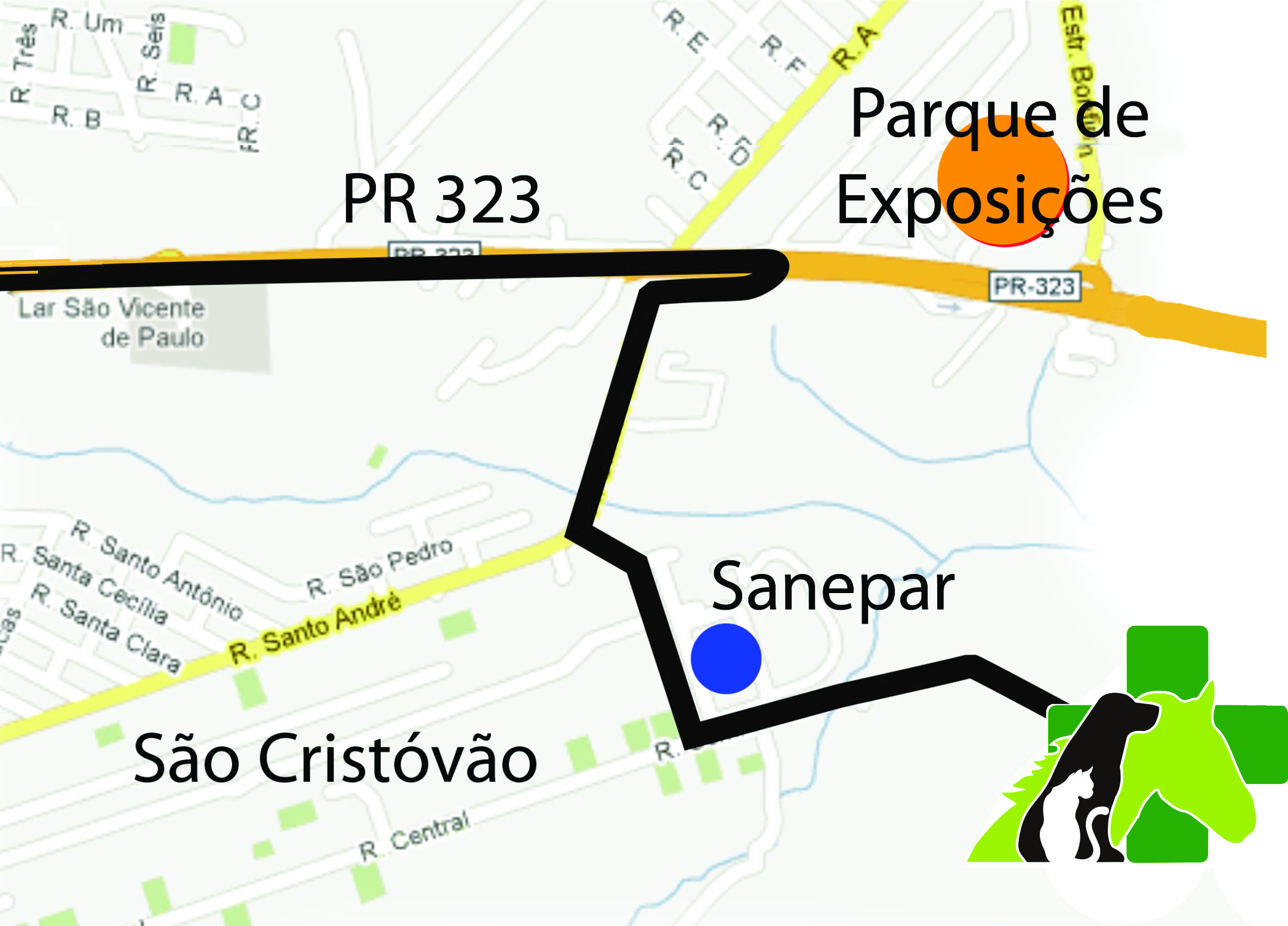 Em seguida siga as placas indicando UEM / Veterinária / Hospital Veterinário.