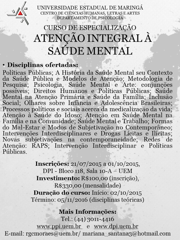 Especialização em Atenção Integral à Saúde Mental- 2016