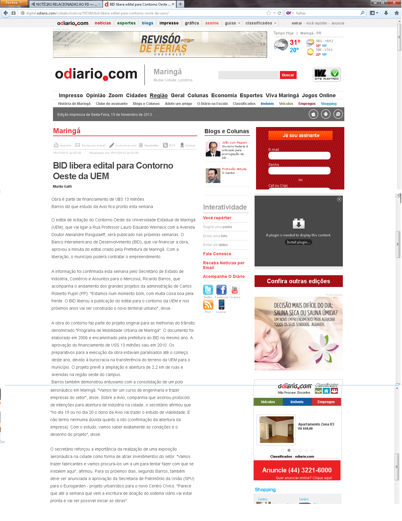 Matéria publicada no dia 15 de novembro de 2013 em O Diário do Norte do Paraná.