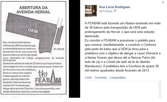 Panfleto distribuído em bairros descreve alargamento da Herval.