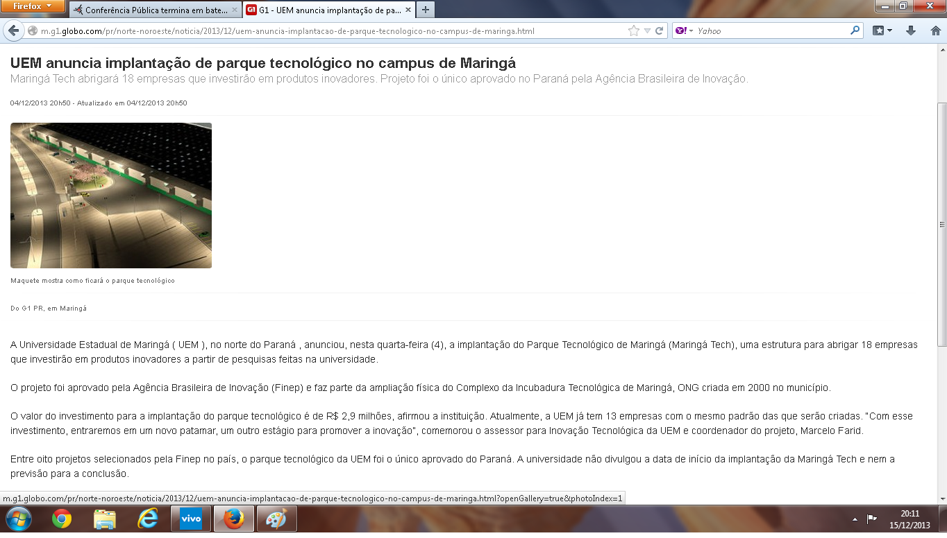 Matéria publicada no dia 04 de dezembro de 2013 no G1/Norte e Noroeste