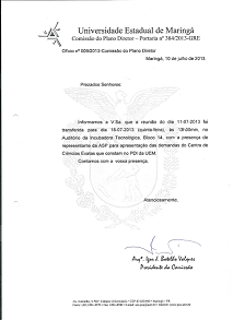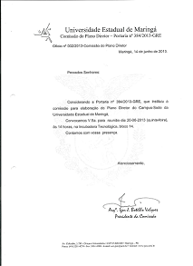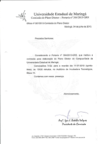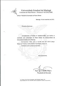 Ofícios relacionados ao Plano Diretor Participativo do Câmpus Sede da UEM.