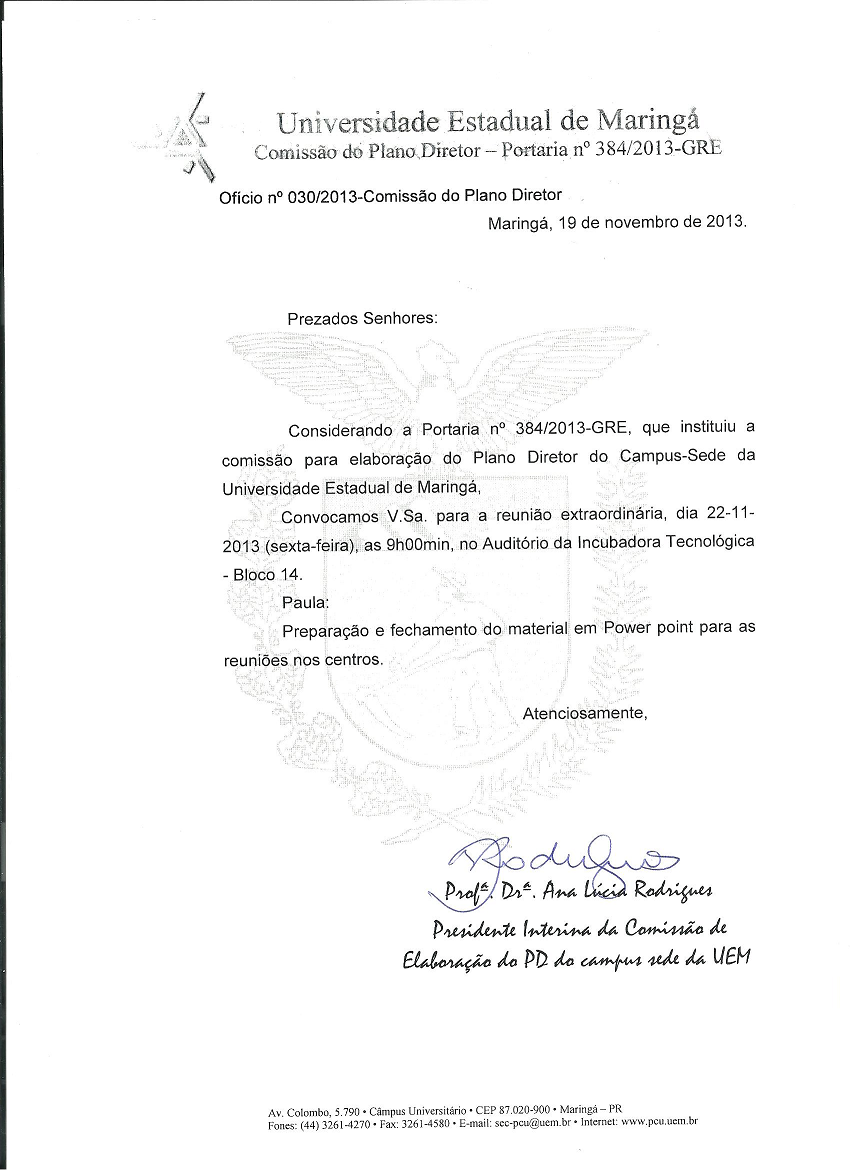APRESENTAÇÃO PLANO DIRETOR PARTICIPATIVO DO CÂMPUS SEDE DA UEM