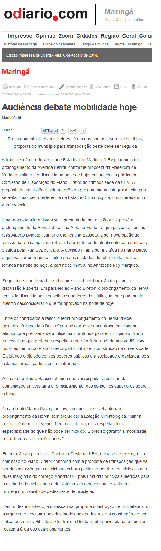Matéria publicada no DIARIO.COM no dia 06 de agosto de 2014.