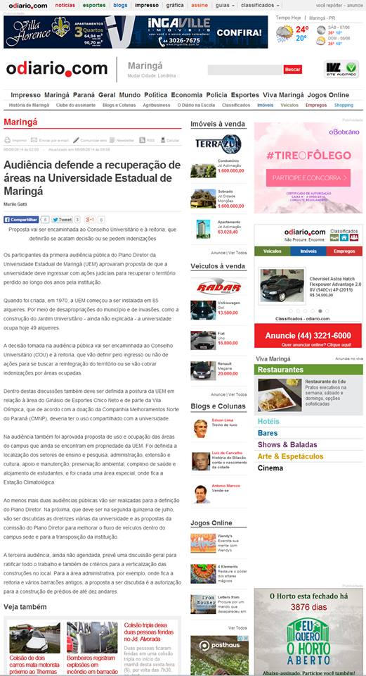 Matéria publicada no O Diário no dia 06 de junho de 2014.