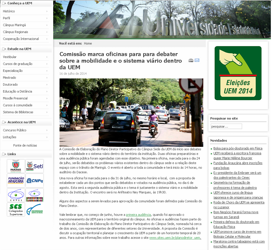 Matéria publicada no site da UEM em 16 de julho de 2014