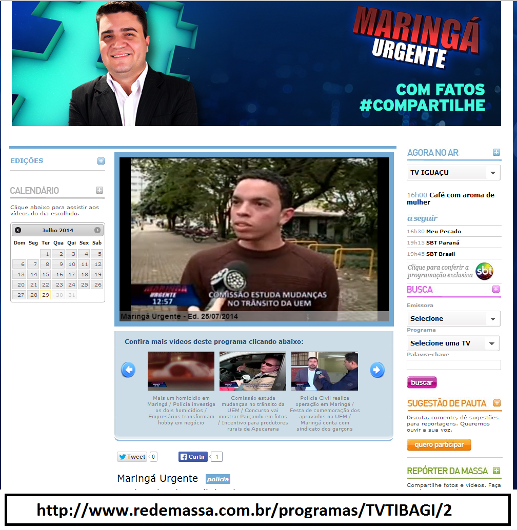 Matéria exibida no dia 25 de julho de 2014 no Programa Maringá Urgente na TV Tibagi.