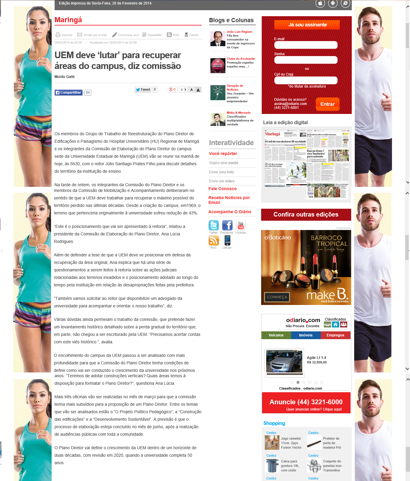 Matéria publicada em O Diário do Norte do Paraná 28 de fevereiro de 2014.