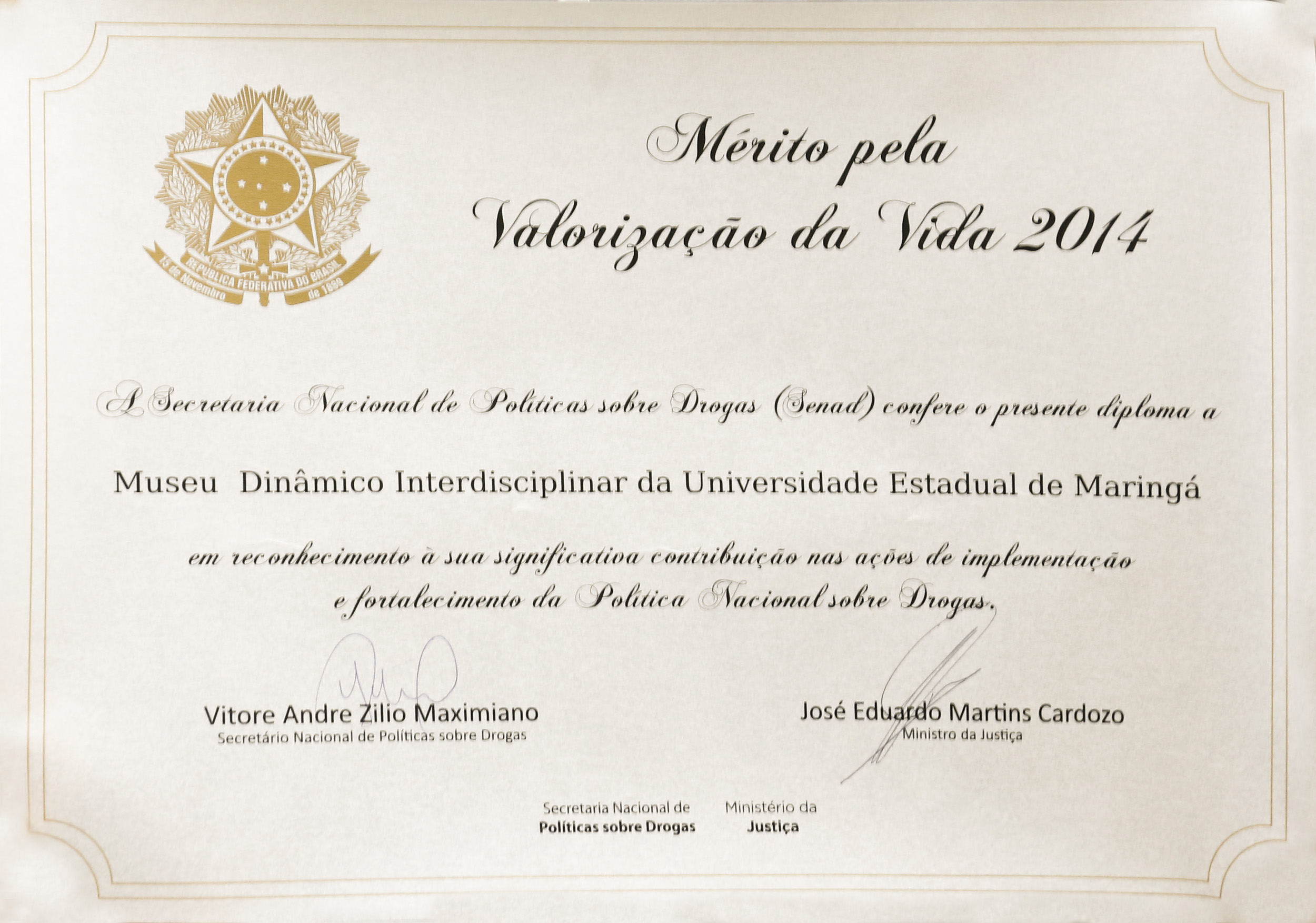 Dia 12 de Agosto o Projeto Tabagismo coordenado pelo Professor Doutor Celso Ivam Conegero, foi agraciado com o Diploma de Mérito a Valorização a Vida da Secretaria de Políticas Sobre Drogas - SENAD do Ministério da Justiça, indicado pelo Conselho Estadual de Políticas Sobre Drogas, a solenidade de entrega do referido diploma realizou-se no auditório Mario Lobo no Palácio das Araucárias - Centro Cívico - Curitiba- Pr.